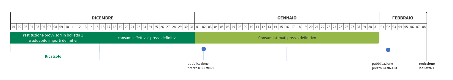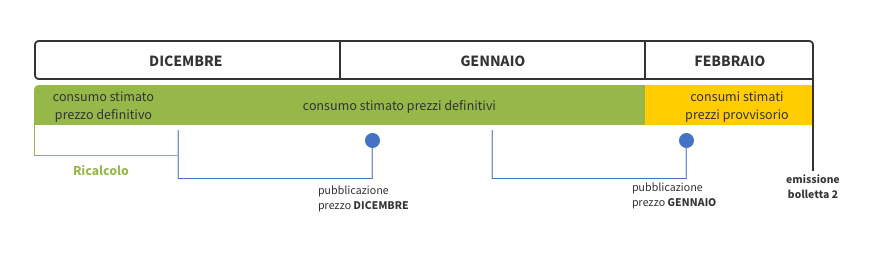 - periodo 16/12 – 31/01: addebito dei consumi stimati a prezzo definitivo
